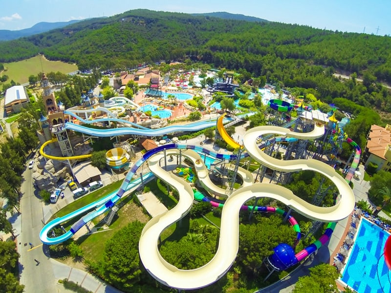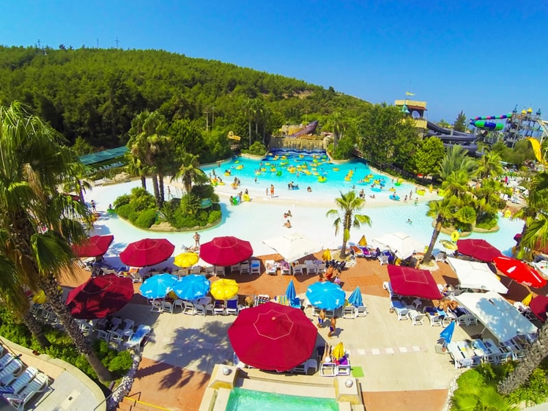 Das 5-Sterne-Hotel liegt direkt am Pamucak-Strand und verfügt über einen großen Wasserpark, sechs Restaurants und ein Spa. Das Hotel verfügt über einen der größten Wasserparks der Türkei. Mit seiner großen Auswahl an Wasserrutschen ist dieser weitläufige Wasser-Themenpark ein idealer Ort für alle, die Nervenkitzel suchen. Für die jüngeren Kinder gibt es einen großen Kinderbereich mit einem Piratenschiff und Rutschen, die erkundet werden können. Wi-Fi ist im gesamten Hotel kostenlos.